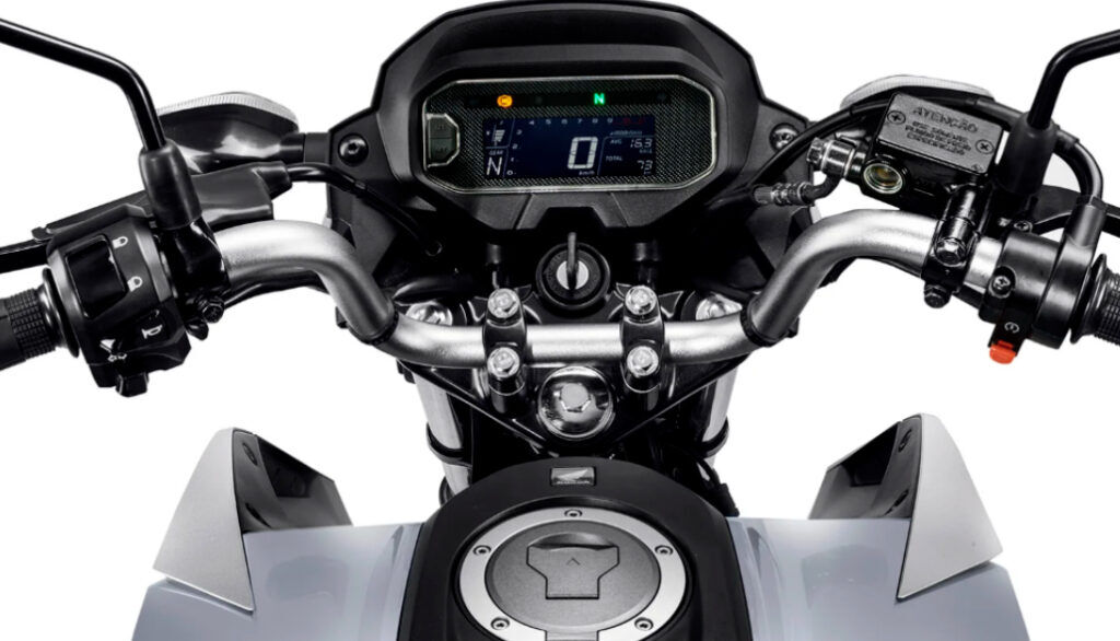 Moderno e funcional, o painel digital com fundo blackout oferece ótima visibilidade, além de indicador de marchas e indicador de consumo instantâneo.