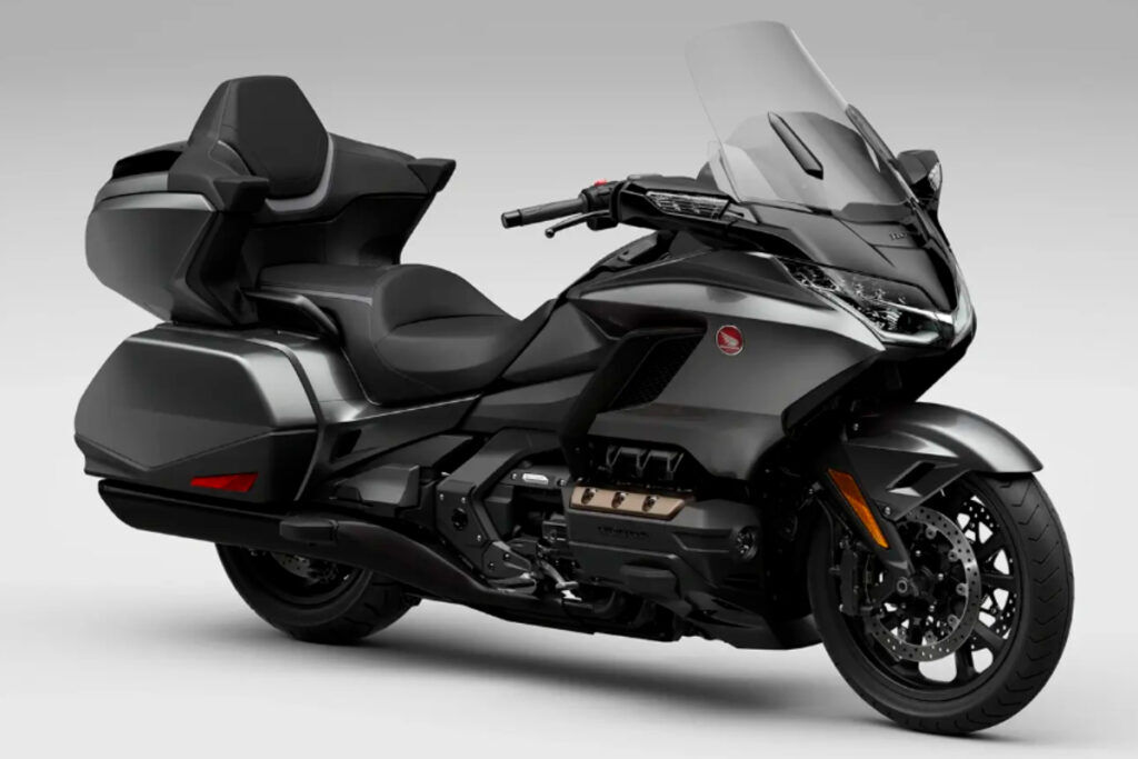 A GL 1800 Gold Wing é sinônimo de conforto e praticidade na hora de pilotar: assentos individuais, para-brisa com ajuste elétrico de altura e ângulo, farol de LED e sistema de pisca com autocancelamento acoplado aos espelhos dianteiros e ao conjunto óptico traseiro.